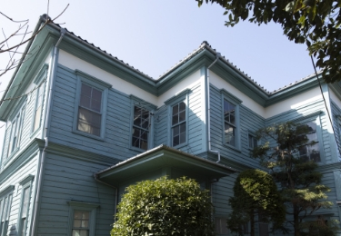 昭和12年ごろに実業家・楢崎定吉が建てたとされるこの住宅は、戦後GHQに接収された後、画家山田盛隆氏が1961年に住まいとして購入、現在は購入時の姿に復元されて一般公開されています。