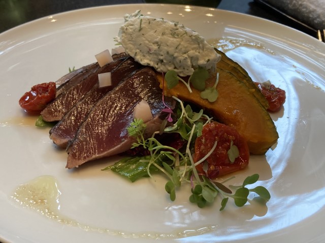 まずはランチをいただきながら、ミニ・レクチャー。今回選んだ会場は、アマン東京の「ザ・カフェ by アマン」にて。アマン東京のロビーやラウンジは高層階にありますが、このカフェだけは1Fの、森に囲まれた空間の中にあります。全面のガラス窓から森が見えるという、大手町にいることを忘れさせるような構造のカフェにて、ランチコースを。