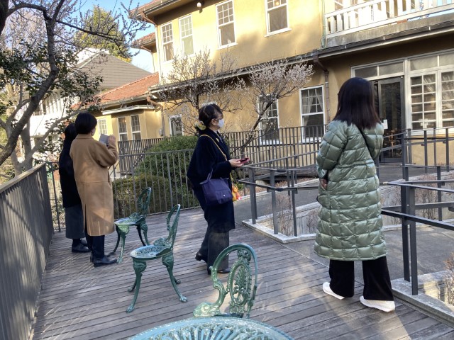 たっぷり2時間のコース料理を楽しんだ後、旧山田家住宅へ。途中に見られる建物もどれも広大な敷地に邸宅風で立派、さすが高級住宅街。「成城憲章」なるもので、景観も守られているのですね。