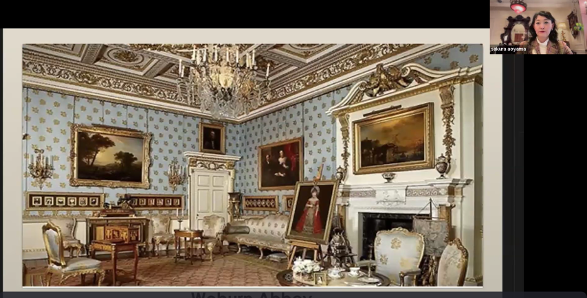 マナーハウス、アビー、プライオリ、キャッスル、ホール、パレス等々さまざまな名前が付いている建物の違いやカントリーハウスとタウンハウスのなどのイギリス独特の表現や、建物だけでなく庭や噴水なども含めた構成を、有名な建築デザイナーの紹介とともに解説いただきました。規模を知るにはやはり東京ドームを基準にして「何個分」という比喩を使うのですが、「ここは東京ドーム〇〇個分です」と、維持管理が如何に大変かが想像できる屋敷がイギリスには散らばっています。