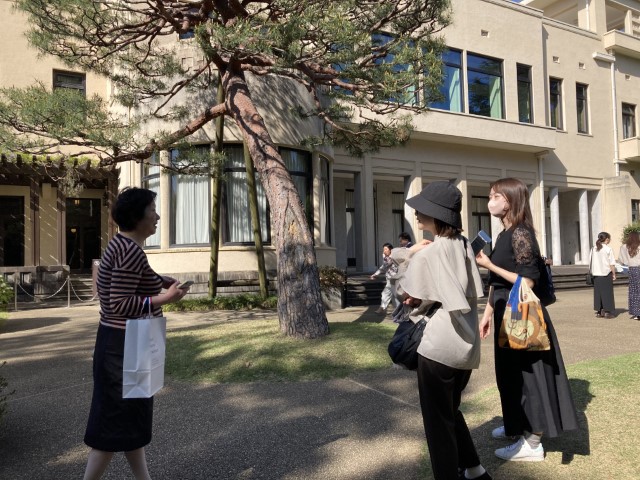 2日目の午前はオンラインによる「アール・ヌーヴォーとアール・デコ」の座学講習、そして3時間後に東京都庭園美術館へ集合し、東京で見られるアイコニック的なアール・デコの建物、旧朝香宮邸を見学しました。前日からスタートした建物公開「アニマルズin朝香宮邸」展、とても賑わっていました。