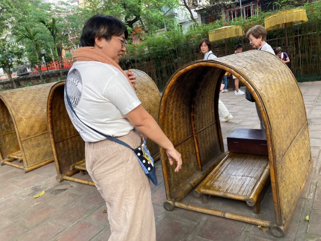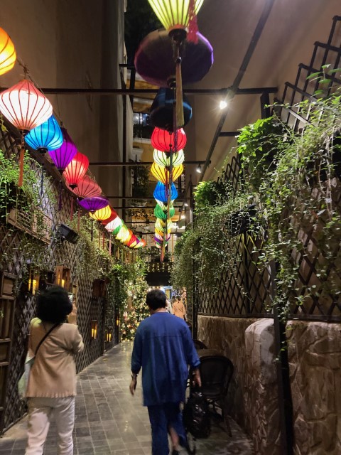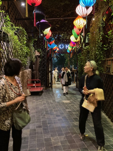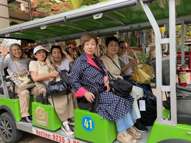 ダナンのNGON THI HOA でランチをいただき(ここもまたハノイに劣らず可愛い店構え、お料理も中部独特の食材などがあるようで、スタッフさんに食べ方を教わりながらトライ。手で巻いたり殻を外したりするのでビニール手袋も用意されていました)、いよいよホイアンの街へ入ります。スーツケースを詰んだ大型バスは市街地には入れないため、途中の駐車場で電気自動車に乗り換えてホテルまでの送迎です。この電気自動車、よくヨーロッパの街にもある観光用ミニ列車みたいな風貌をしているのですが、乗るとビュンビュン飛ばしてちょっと怖い!?