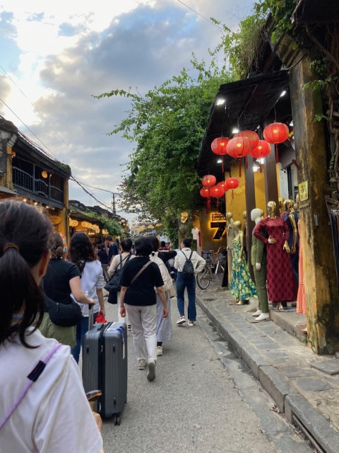 今回は北部のハノイと南部のホー・チミンに加えて1泊だけ中部の街、ホイアンをプログラムに入れました。ベトナムという国を初めて訪れる人も多い中、いわゆる「東京と大阪の間にベトナム戦争の影響を受けていない古都があり、かつては貿易の街として栄え鎖国前の日本人も移住して日本人街があった、そして今やこのレトロで可愛い街並みが世界遺産となっている」と聞けば行かない手はありません、ユーラシア旅行社さんのご提案で研修の中抜きとして入れた癒しの街、ホイアン。ベトナム第3の都市、ダナンの空港より40分くらいで到着です。