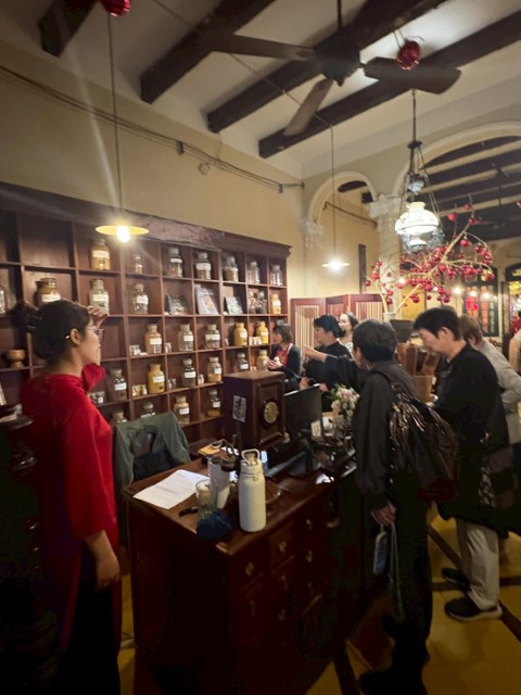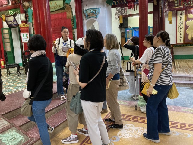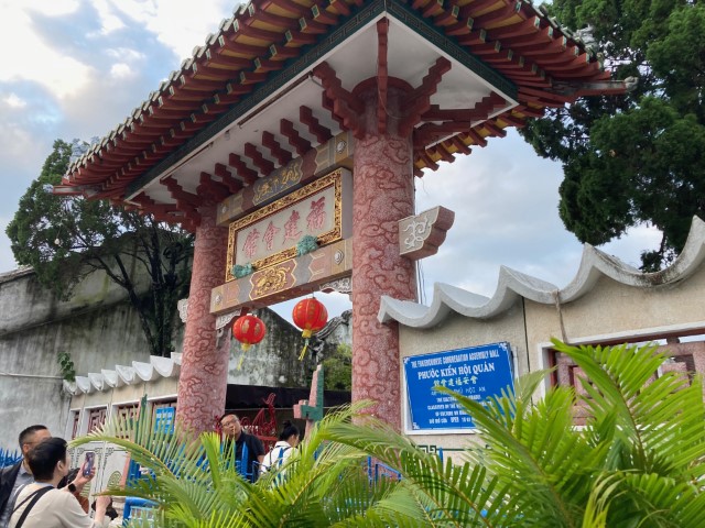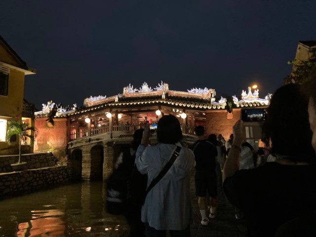 チェックイン後「本来は外観見学だけど17時までに着けば中にも入れる」ということで、福建会館をAI空ちゃんの解説にて見学。旧市街を歩きながらところどころで説明をいただき、行き着く先は日本人商人によって16世紀末に架けられたという来遠橋(通称日本橋)。