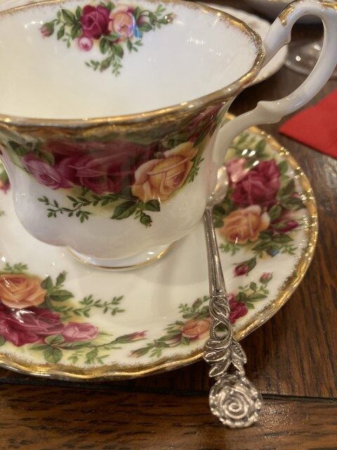 2階に上がると、そこは英国のティールーム! みなさん上がって来られると「わぁ、素敵」と、どこもかしこも写真に収めたくなってしまう可愛らしいインテリアです。