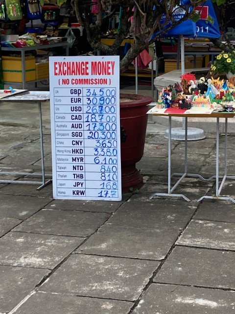 とある両替屋さんにて。JPYはかろうじて下部にありますが、そのうちハードカレンシーの座を下ろされてしまうのでは!?