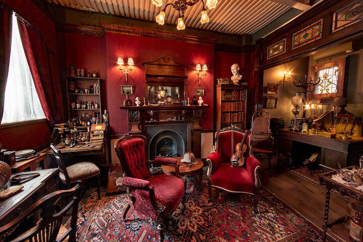 ヴィクトリアン朝の数々の美しいアンティーク、英国王室御用達のピアノ、ジョン・ロブの靴の木型、そしてシャーロックホームズの部屋の再現と聞けば、もう英国アンティーク好きにはたまらない美術館。鎌倉彫をイメージする独特のファサードも建築好きにはたまらないですね!