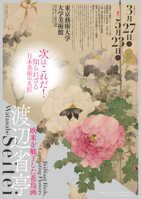 当時のヨーロッパでも繊細で洒脱な花鳥画で人気を博した江戸の美意識をもつ画家・渡辺省亭、帰国後は濤川惣助と共に無線七宝を編み出し、迎賓館赤坂離宮の七宝額原画などを手がけます。しかしほどなくして美術展覧会や美術団体と距離を置くようになり、やがては生前の高い評価に比べ、忘れ去られた画家として長いこと回顧される機会がなかった画家ですが、近年再評価され、再び脚光を浴びています。