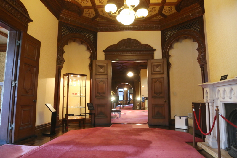 ヨーロッパのあらゆる建築様式をミックスしたようなこの建物、17世紀の英国ジャコビアン様式の装飾にルネサンス風の意匠がほどこされ、さらにはイスラム風のインテリアモチーフやコロニアル様式のベランダは、施主・岩崎久弥が留学していたアメリカのカントリーハウス調の建築の影響もあるのでしょうか。古典オーダーとされる列柱も1階がトスカーナ式、2階がドーリア式、さらには本館とはやや離れた別館に、19世紀に英国貴族の住まいで必ず設置されていたと言われるビリヤードルームがスイスのシャレー(山小屋)風で建てられています。