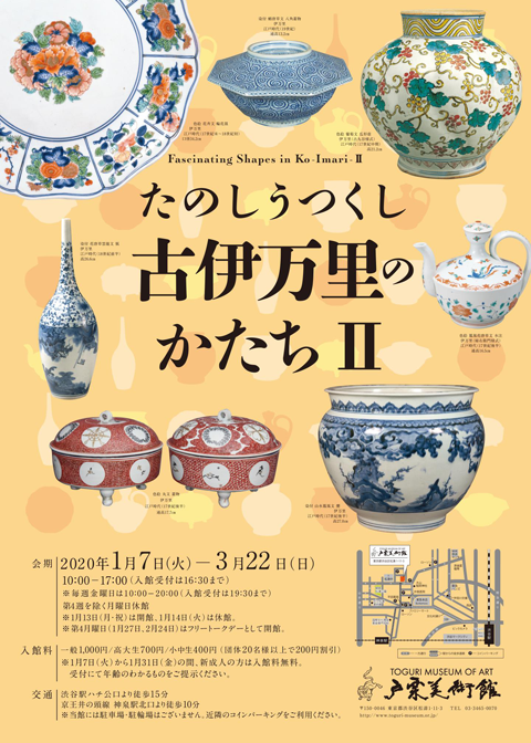 有田では、国内外からの需要に応えて、多種多様な磁器を焼造しました。皿や鉢、猪口(ちょく)、瓶、西欧向けにはティーポットやシュガーポット、ワインカップなどといった器種としてのバリエーションはもちろんのこと、装飾としてのかたちも充実しています。轆轤(ろくろ)成形のみならず、土型を活用したり、彫り文様を施したり、絵付けと組み合わせたりと、技術を駆使して自由自在に様々なかたちを生み出しました。(戸栗美術館発行プレスリリースより引用)